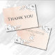 Chic blush pink watercolor gradient background, decorated with delicate, and modern sketch style white floral arrangement on the top right corner and bottom left corner. Chic serif font on charcoal for the customizable thank you typography.