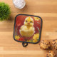 Cute chick with flowers, is featured on this colorful pot holder for the Easter Holiday. Use yourself or give as a gift, has silver quilted heat protection and a hanging loop. .