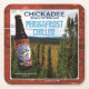A poster for mythical, All Natural Chickadee Birch Beer; made with free-range birch trees and bottled in Willow, AK. Permafrost chilled! Features the image of a chickadee perched on the branch of a birch tree. There are seven species of chickadees in North America. Chickadees are found throughout much of the continent including Alaska and most of Canada. They are also found on Prince Edward Island, Newfoundland, Nova Scotia, Queen Charlotte Island and Vancouver Island. In general, they do not migrate. Every couple of years when populations are high, birds that hatched within the past year may "irrupt" (spread out), or move southward in the fall. Have you ever wondered how chickadees, weighing about 12 grams and small enough to fit inside a human hand, can survive winter? They have high metabolic rates and little body fat. On cold winter nights, Chickadees reduce their body temperature by up to 10–12 °C (from their normal temperature of about 42 °C) to conserve energy. Such a capacity for torpor is rare in birds (or at least, rarely studied). While this may seem counterproductive, “nocturnal hypothermia” probably reduces energy expenditure by as much as ten percent. As winter approaches temperatures decrease as does the supply of insects, berries and seeds. The birds must eat during the day and put on sufficient fat to be metabolized as heat during the night. Some studies suggest chickadees may gain ten to a whopping 60 percent of their body weight in a day to keep warm through the long winter night. On extremely cold nights, a chickadee uses almost all of its body fat to keep warm, then replaces it the next day in order to repeat the cycle. To ensure a food supply, during autumn the chickadee roams a territory covering tens of square miles, gathering morsels of food and stores them in hundreds of hiding places in trees behind buckled pieces of bark, in patches of lichens and other caches. In the fall the chickadee's hippocampus, the part of the brain responsible for spatial organization and memory, grows by 30 percent. In the spring, when memory requirements lessen, the hippocampus shrinks back to its normal size, In the states of Alaska and Washington, and in parts of western Canada, Black-capped Chickadees are among a number of bird species affected by an unknown agent that is causing beak deformities, which may cause stress for affected species by inhibiting feeding ability, mating, and grooming. Black-capped Chickadees were the first affected bird species, with reports of the deformity beginning in Alaska in the late 1990s, but more recently the deformity has been observed in close to 30 bird species in the affected areas, as reported by the Alaska Science Centre of the United States Geological Survey.