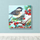 Black Capped Chickadee With Berries On Branch Wrapped Canvas. The design on this canvas is of an adorable winter chickadee painting. Perfect for the nature and bird lover! This artwork is also available on other products for mixing and matching from JennsEmporium.