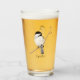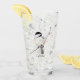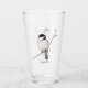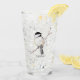 A colour pencil drawing of an adorable chickadee adorns this customizable drinking glass!
