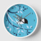 Decorative bird clocks of Black Capped Chickadee perched on stylized branches. Background can be customized to different colour