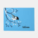 Nature themed doormats with styled bird art of Black Capped Chickadee on a decorative branch. "Welcome" text can be customized.