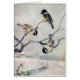 Trois chickadees noir-couverts (atricapillus de Poecile) s'accrochent aux brindilles au milieu d'une tempête de neige dans cette illustration vintage à partir de 1920. On semble se demander pourquoi l'autre accroche upside-down.