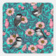 Chickadees in the wild rose, pink and blue square sticker