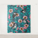 Chickadees in the wild rose, pink and blue tapestry