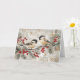 chickadees evergreen, red berries snowflakes, vintage grey background, glittering chickadees, soft textured paper, gold foil design, red glitter accents, winter bird scene, festive chickadees, cabin decor
