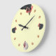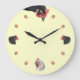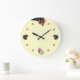 A frivolous clock for poultry fans with four chicken portraits - two matching black hens heads left and right, a larger black hen looking down from the top, and a white sussex hen at the bottom. The intermediate hours are small eggs. A bit of humour for the kitchen :) There are separate versions for the different size and square shape. This version has a pale yellow background which can be changed using the customize button and then edit.