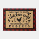 "Welcome to the chicken coop" text with 4 chicken silhouettes (1 hen, 1 rooster, 2 pullets / chicks), plus a leaf wreath and eggs. Add your family name to this chic rustic farmhouse doormat with a red / black check buffalo plaid frame, faux burlap centre, and black silhouettes - perfect for farmers and chicken lovers. This design is made to fit the larger doormat size best. TO ORDER THE SMALLER SIZE, visit here: https://www.zazzle.com/chicken_coop_hen_red_buffalo_check_plaid_country_doormat-256359292576540449