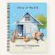 Coop manager notebook with optional page styles. Large 8.5 x 11 inch size, spiral bound with ring colour options (red is shown). This journal has a fun, rural coop image on the front and three lines of text templates, for title, year and other. Blue skies background and hens and rooster in front of a cute, light blue chicken coop, is the design. The farm scene also includes a shovel, jug, wildflowers and a green tree. Choose from many paper styles, with wide or narrow lines, sketch areas, graph paper, and more. Customize for kids, or adults, who manage the homestead coop for business or not. The design transfers well to all other sizes except the heart shape.