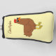 This chicken design golf club head cover is an accessory that you slide over the head of a golf club for protection against knocks whilst sitting in your golf bag. Made out of polyester, cotton, and marine vinyl with a choice of different piping colours. You can customise this golf club head cover with any text. Should you require any help with customising then contact us through the message link on this page. Hen design golf club head cover.