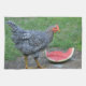 This chicken loves watermelon. Great addition to the country kitchen!