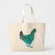 Chicken Hen Teal Blue on White Background Large Tote Bag