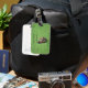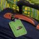 This is a picture of a Chicken on a Luggage Tag that says DON'T TOUCH MY CLUCKIN STUFF.