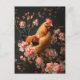 A charming country scene featuring a proud chicken nestled among soft pink flowers, blending rustic farmhouse warmth with delicate floral elegance. Perfect for lovers of vintage country charm.