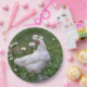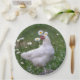 These paper plates feature a pretty white chicken posing on a wooden mushroom with white daisies in the background. Sure to please any chicken lover!