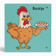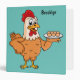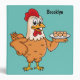 This funny chicken is serving eggs for dinner! Drawn in happy cartoon style.