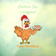 This funny chicken is serving eggs for dinner! Drawn in happy cartoon style.