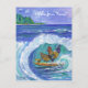 Chickens and Rooster Surfing Kauai Beach Postcard