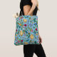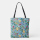 Chickens and wildflowers on baby blue tote bag