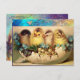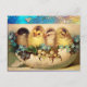 CHICKENS,SNOWDROPS AND EASTER EGG IN BLUE SPARKLES HOLIDAY POSTCARD