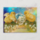 CHICKENS, SNOWDROPS AND EASTER EGG WITH BLUE BOW HOLIDAY POSTCARD
