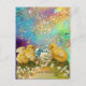 CHICKENS, SNOWDROPS AND EASTER EGG WITH BLUE BOW HOLIDAY POSTCARD