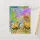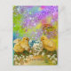 CHICKENS, SNOWDROPS AND EASTER EGG WITH BLUE BOW HOLIDAY POSTCARD