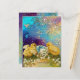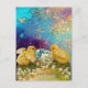 CHICKENS, SNOWDROPS AND EASTER EGG WITH BLUE BOW HOLIDAY POSTCARD