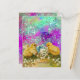Elegant artistic vintage style floral design with white flowers and funny chickens digital painting and watercolor in purple,turquoise ,teal,aqua blue fuchsia colours with gold sparkles and silver foil by Bulgan Lumini (c)