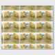 CHICKENS, SNOWDROPS AND EASTER EGG WITH BLUE BOW WRAPPING PAPER