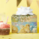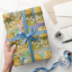 CHICKENS, SNOWDROPS AND EASTER EGG WITH BLUE BOW WRAPPING PAPER