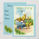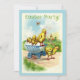 These adorable chicks in a wagon are here to wish a Happy Easter from this brightly coloured vintage Easter postcard reprinted on an Easter party invitation.