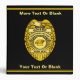 For the chief cook and bottle washer. A police badge with text reading "CHIEF" and "KITCHEN POLICE." Customize by adding your own text on the shield (it will appear on the shields on both front and back), in two further places on the front, and yet another on the spine.