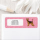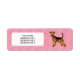 Illustration de dessin animé originale de Destei d'un chien de race Airedale Terrier adorable sur fond rose avec un motif de formes de cœurs. Il y a également une zone de texte personnalisable pour des informations d'adresse personnalisées ou un autre texte.