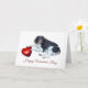 Un espagne breton français tient un coeur rouge sur cette carte sucrée de Saint-Valentin.