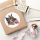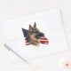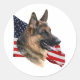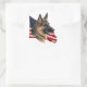 Un noble berger allemand devant un drapeau américain agitant sur un autocollant.