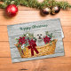 L'avant de cette carte de voeux de vacances amusante a une image délicieuse d'un chien Bichon Frise dans un panier en osier. La corbeille est décorée de bouquets de fleurs poinsettia et d'un arc rouge vif. Le texte personnalisable au-dessus de l'image dit "Joyeux Noël" en écriture verte. Tout est placé sur un arrière - plan rustique en bois gris. L'intérieur contient deux champs de texte supplémentaires que vous pouvez customiser comme bon vous semble.