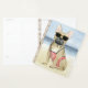 Cette impression d'aquarelle présente un chiot en lunettes de soleil qui profite de la plage | Par Grace Popp