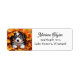 Étiquettes d'adresse de retour d'automne saisonnier. Un doux petit chien chiot jouant dans une pile de feuilles d'automne. Il regarde adorablement tandis qu'il se cache dans la pile de feuilles.
