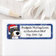Ce dessin animé super mignon du chien de montagne bernois a un sucre de canne rayé rouge et blanc dans la bouche, et porte un casquette Père Noël rouge vif sur la tête. Dans l'arrière - plan est un bouillon de flocons bleus et blancs, parfait pour l'hiver. Les étiquettes de adresse bernois de chiens de montagne sont absolument adorables pour la saison des fêtes.
