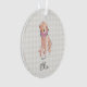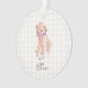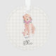 Conception de chien aquarelle dans des couleurs discrètes, fleurs roses autour du cou, garniture gris clair sur fond gingham blanc cassé avec NOM DE CHIEN personnalisé en gris foncé. Mémorial de chien doux, Ornement de vacances, Famille Animal de compagnie, Souvenir. Doux, Coloré, Intemporel. Mélangez et assortissez toute la collection Pet Lover / Pets par TMCdesigns.