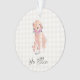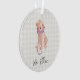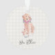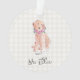 Conception de chien doré à l'aquarelle dans des couleurs atténuées, fleurs roses, fond à carreaux blanc avec AMOUR personnalisé, NOM DU CHIEN en gris foncé. Mémorial pour chien doux, Ornement de vacances, Nouvel animal de compagnie de la famille, Souvenir intemporel. Doux, Coloré, Adorable. Mélangez et associez toute la collection Pet Lover / Pets par TMCdesigns.