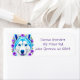 Chien mignon Husky aux yeux bleus et aux fleurs violettes à l'art.