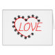 Dessins d'empreintes de pattes de chien, un coeur rouge et le mot "amour". Design original.