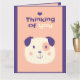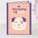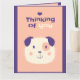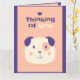 Belle carte de voeux composée du visage d'un chien avec la citation "Penser à vous" dans les couleurs pastel. Vous pouvez le customiser et y ajouter votre texte. Bon appétit !