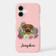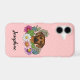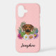 L'illustration originale de Destei d'un adorable chien de race Rhodesian Ridgeback en gros plan entouré de fleurs sauvages d'été colorés. Il y a une fleur rose rousse, une fleur violette, une fleur rose foncé et une fleur marguerite blanche ainsi que quelques feuilles verts et des branches. La couleur arrière - plan est rose avec un motif à pois clair. La couleur de l'arrière - plan peut être changée en n'importe quelle autre couleur et le motif de pois peut être enlevé, si vous le souhaitez. Il y a aussi une zone de texte personnalisable pour un nom.
