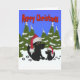 Deux mignons chiens en casquette Père Noël. Un papa et un bébé pooch sont prêts pour les vacances et vous souhaitent un Joyeux Noël et une Bonne Année