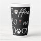 Parfait pour ceux qui aiment le café, le vin et les chiens. Latte Mug design dispose d'un texte de fantaisie pour le café avec un ornement de tasse de café pour la lettre "o", vin qui contient un verre de vin rouge pour la lettre "i", et les chiens avec un embellissement empreinte de patte en remplacement du "o". Autres cadeaux disponibles avec ce design aussi.