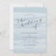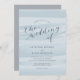 Our Chiffon wedding invitation is understated and elegant, featuring a watercolor wash background in tone on tone shades of pale sky blue, accented with chic calligraphy and serif lettering in dusty slate. A modern watercolor wedding suite in subdued blue and grey for any season.